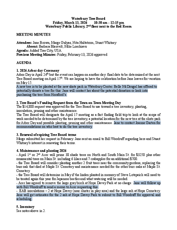 Previous: Tree Board Meeting 2/13/2026