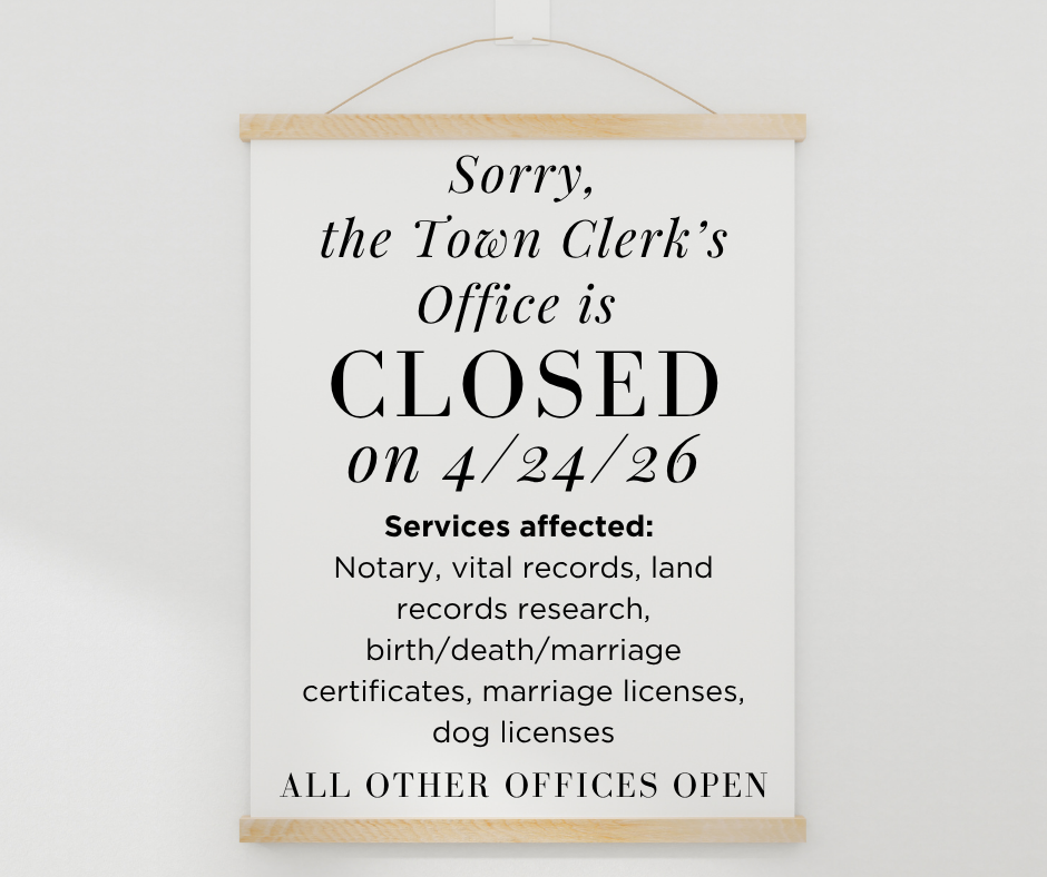 Town Offices - all services - remain closed on Thursdays. Regular business hours are 8:00 a.m.-4:30 p.m., Mon.-Wed. & Fri. Thank you for your understanding!